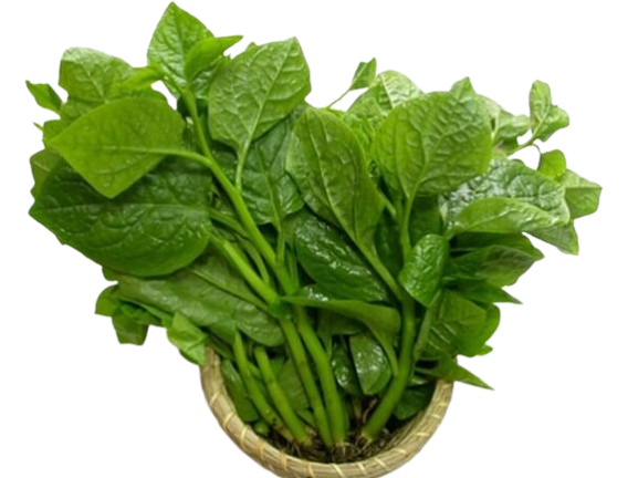 Đĩa rau mùng tơi xanh mướt, lá dày mướt mát, chứa nhiều vitamin A, C, sắt và chất nhầy tự nhiên giúp thanh nhiệt, nhuận tràng, làm mát cơ thể. Khi nhúng vào lẩu cua đồng, rau mềm ngọt, quyện cùng vị béo bùi của gạch cua, mang đến hương vị dân dã, thanh mát và đầy bổ dưỡng.